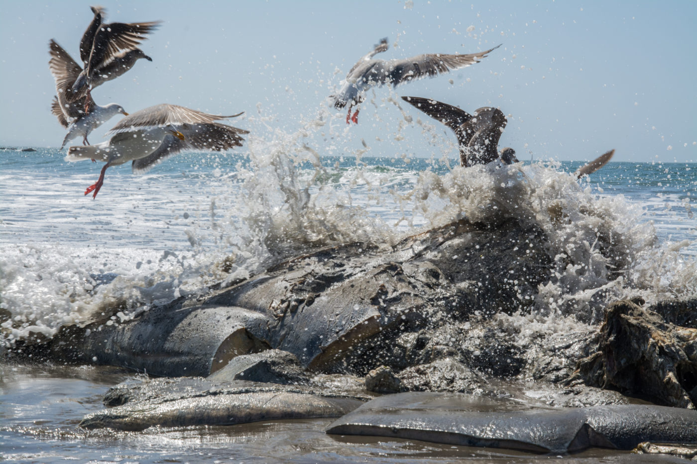 Gray whale strike. This whale was most likely struck by a ship and washed up at Muir Beach. The Marine Mammal Center performed a necropsy to determine the exact cause of death. Here, we can witness the way that mother nature is taking her back. This was such a powerful moment to be in the presence of a giant creature that is still so susceptible to the human impact.